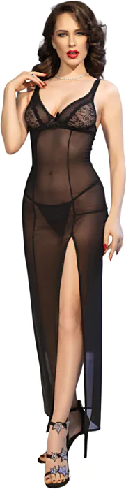 Poczuj się wyjątkowo w eleganckim babydollu od Chilirose, skonstruowanym z elastycznego i przezroczystego materiału, który subtelnie eksponuje Twoją sylwetkę. Ten długi model łączy luksus z wygodą, dzięki regulowanemu zapięciu na plecach i dopasowanemu stanowi, co zapewnia komfort przez całą noc.