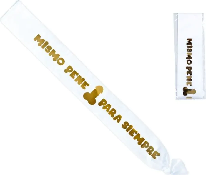 Biała banda z metalicznym penisem to doskonały dodatek na wieczory kawalerskie czy urodziny. Przyciąga wzrok i dodaje humoru każdej imprezie.