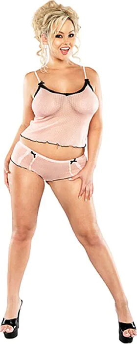 To prosty komplet marki Exposed: model O - L CAMI SHORT w stylu MESH, dostępny w kolorze różowym i rozmiarze XXL. Siatkowy krój oznacza, że materiał jest lekki, przewiewny i daje delikatne, półprzezroczyste wykończenie — komfortowy wybór na wieczór w domu lub jako bielizna do zmysłowych stylizacji. Jako sprzedawca z doświadczeniem powiem szczerze: mesh daje dużą oddychalność i efektowny wygląd, ale nie zastąpi konstrukcji podtrzymującej typu biustonosz z fiszbinami.