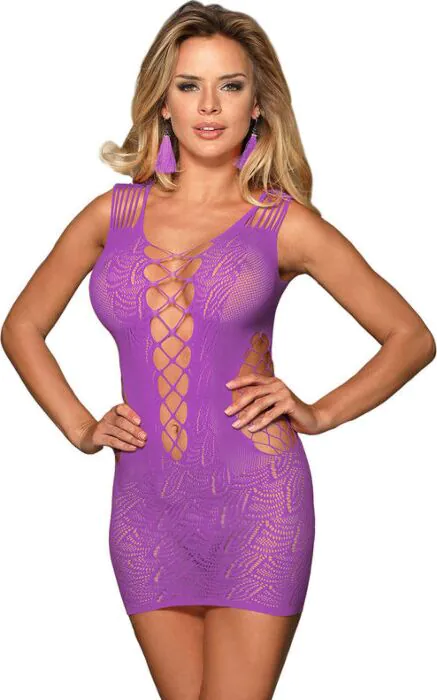 Wyjątkowy bodystocking w kolorze purpurowym, który świetnie podkreśla sylwetkę i zapewnia komfort noszenia. Wykonany z 88% nylonu i 12% spandex, oferuje elastyczność i idealne dopasowanie do różnych kształtów ciała. Krótkie wycięcie oraz krzyżujące się detale tworzą efektowny i seksowny wygląd.
