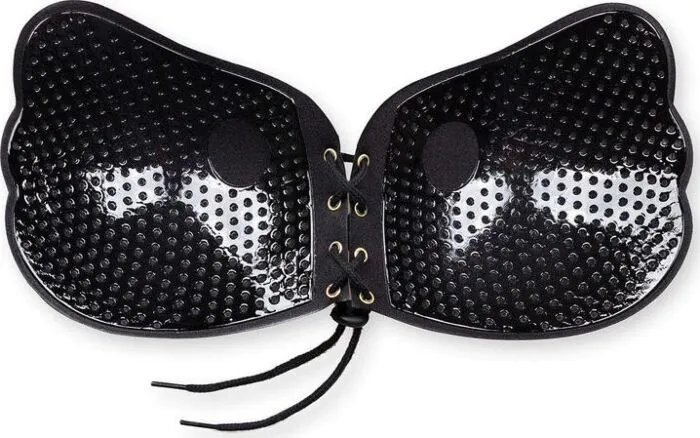 Przed nałożeniem biustonosza upewnij się, że skóra jest czysta i sucha. Po odklejeniu folii ochronnej, umieść miseczki na piersiach, a następnie ściągnij sznurki i zapięcie, aby uzyskać pożądany efekt. Użyj nawilżającego lub innego produktu do czyszczenia, aby zachować jego właściwości klejące.