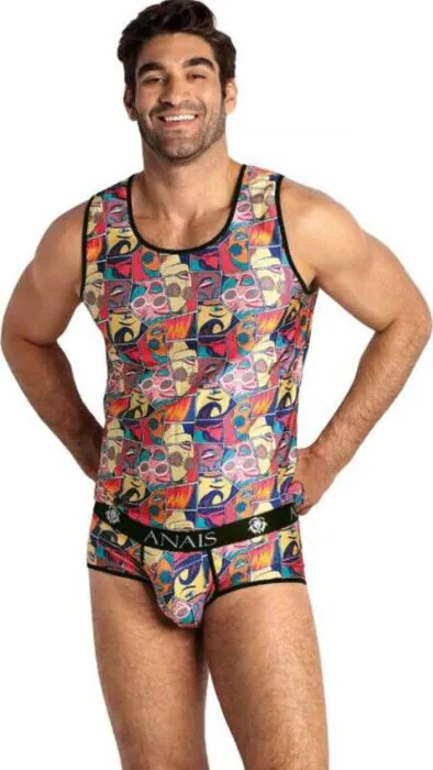 Camiseta ANAIS MEN COMICS TOP XL to klasyczny top na ramiączkach, który doskonale dopasowuje się do sylwetki. Wykonana z miękkiego modal, jest wygodna i stylowa, idealna dla mężczyzn ceniących komfort.