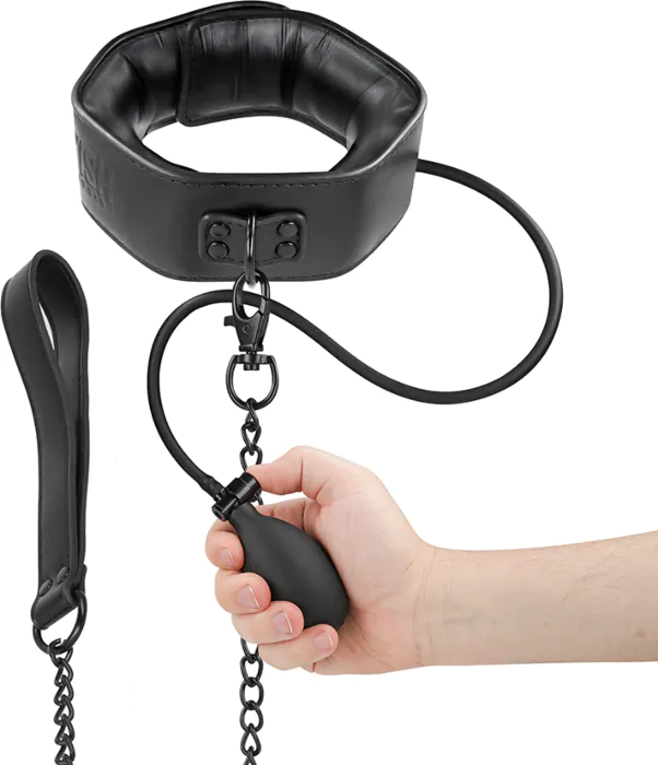 Intensifica tus juegos de bondage con este collar inflable. Ajustable y cómodo, ideal para quienes buscan explorar nuevas sensaciones con seguridad.