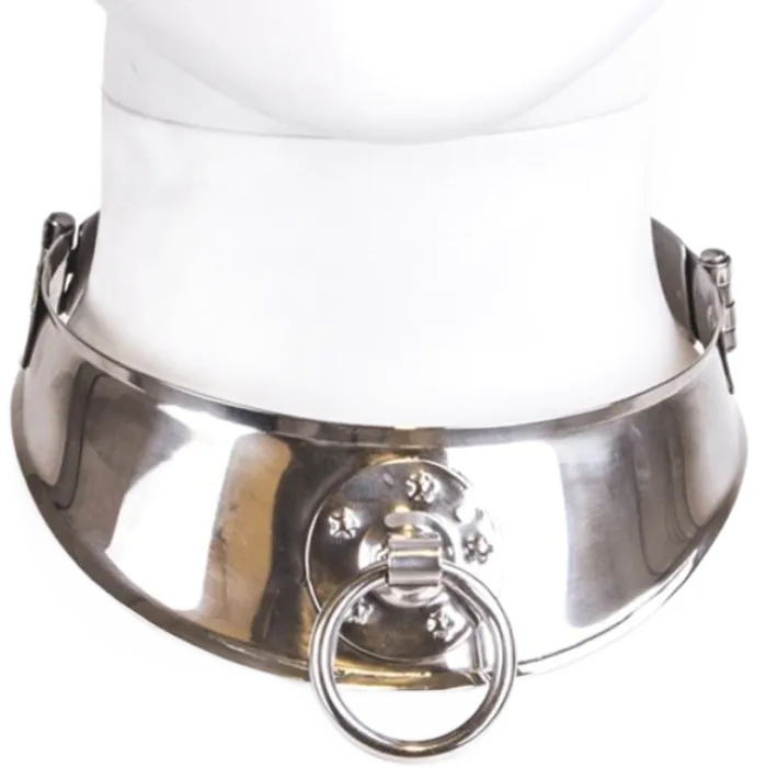 Experiencia de sumisión y estilo con el collar de acero inoxidable Metal Hard, diseñado especialmente para hombres. Su acabado brillante y bordes curvados ofrecen una sensación cómoda y atractiva. Incorpora un cierre para añadir un candado, otorgando un toque de control, y una anilla frontal para sujetar cadenas o cuerdas.