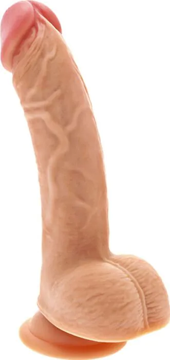 To dildo to klasyczna propozycja dla klientów, którzy szukają realistycznego kształtu i faktury. Podwójna warstwa silikonu oddaje miękkość zewnętrznej powłoki przy jednoczesnym stabilnym rdzeniu — dzięki temu zabawka zachowuje kształt podczas penetracji, a jednocześnie daje naturalne odczucie przy kontakcie z ciałem. Zauważysz detale: wyraźny żołądź, żyłki i jądra, które dodatkowo stymulują podczas ruchu.