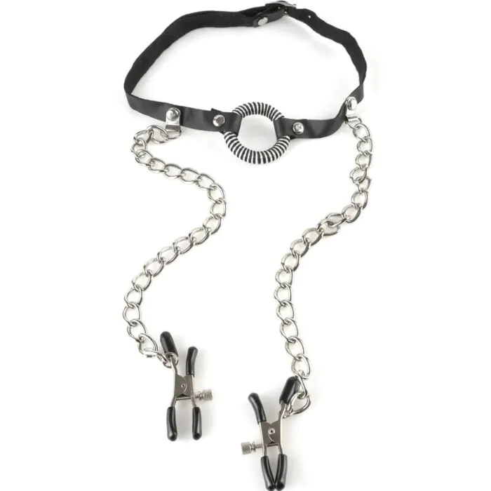 Mordaza FETISH FANTASY SERIES z pinzami na sutki