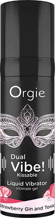 Płynny żel stymulujący Orgie Dual Vibe o smaku Strawberry Gin & Tonic — zaprojektowany do pocałunków i zabaw oralnych oraz do aplikacji na łechtaczkę, żołądź i sutki. Daje wyczuwalne mrowienie i wibracje (poziom 6) dzięki składnikom roślin z Amazonii. Dobre rozwiązanie, gdy chcesz dodać smak i dodatkową stymulację bez użycia elektroniki.