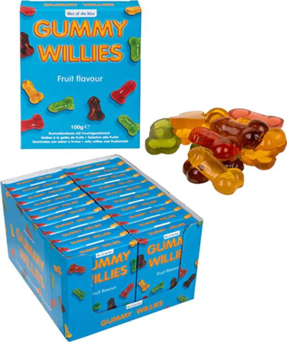 Gominolas de diferentes sabores y en una divertida forma de mini pene, con glánde y testículos marcados. Viene en cinco colores diferentes (marrón, verde, rojo, naranja y amarillo). Incluye aproximadamente unos 100 g en gominolas en un cómodo paquete. Se vende por unidad. Características principales:Gominolas en forma de pene.5 colores diferentes y sabores diferentes.Vienen en un paquete que contiene unos 100 g.