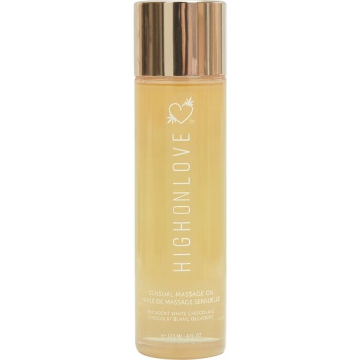 Olejek Hight White Chocolate zawiera wysokiej jakości olej z nasion konopi oraz naturalne oleje, które odżywiają skórę i poprawiają komfort podczas masażu.