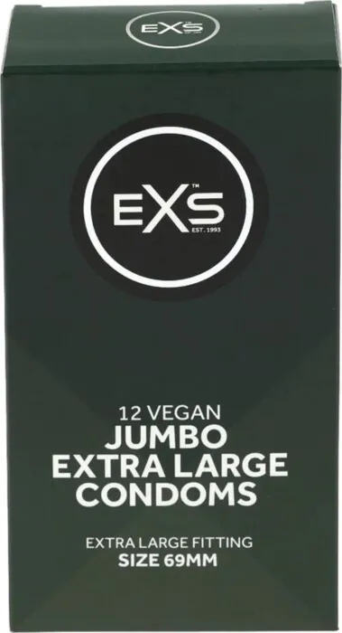 Extra duże prezerwatywy Exs Jumbo zapewniają wyjątkowy komfort i bezpieczeństwo dzięki większym rozmiarom. Wykonane z naturalnego lateksu, są przezroczyste, mają lubrykant silikonowy i są wyposażone w zbiornik. Ich szerokość wynosi 69 mm, a długość 223 mm, co czyni je odpowiednimi dla osób preferujących większe rozmiary.