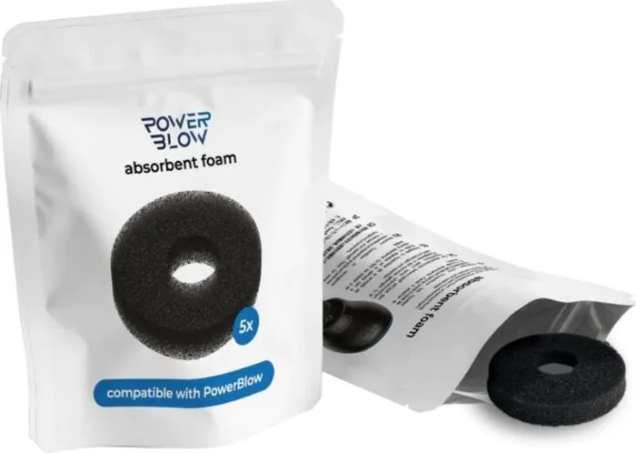 Zestaw 5 pianek chłonnych do urządzenia PowerBlow, który chroni przed przedostawaniem się płynów. Wygodne w użyciu i łatwe do wymiany.