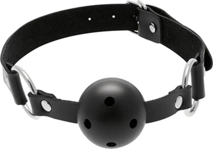 Knebel Breathable Ball Gag od S Pleasures to prosty, regulowany knebel dla miłośników BDSM, którzy szukają komfortu i kontroli. Miękka gumowa kulka z otworami ułatwia oddychanie, a metalowe obręcze i skórzany pasek zapewniają stabilne dopasowanie. Dobra propozycja dla par zaczynających przygodę z krępowaniem głosu.