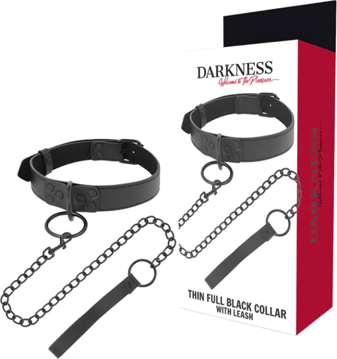 Pełna kontrola i wygoda w jednym. Naszyjnik z łańcuchem Darkness wykonany z neoprenu i puleatheru (półskóry) jest mocny, ale jednocześnie komfortowy. Dzięki otworom w kołnierzu, pasuje do większości osób, co czyni go wszechstronnym akcesorium dla każdego, kto pragnie eksplorować świat BDSM.