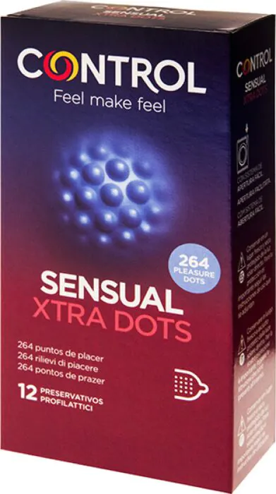 Nawilżone prezerwatywy CONTROL XTRA DOTS — zestaw 12 sztuk z teksturą z 264 punktów i dodatkowymi prążkami dla intensywniejszej stymulacji partnerki. Dla par szukających mocniejszej percepcji kontaktu powierzchniowego i nieco luźniejszego dopasowania dzięki 54 mm szerokości nominalnej. Proste w użyciu, jednorazowe i zapakowane dyskretnie.