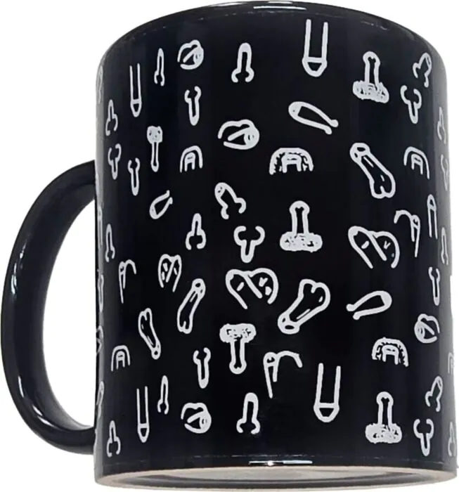 Ożyw swoje poranki z tą oryginalną czarną filiżanką z rysunkami penów. Doskonała na prezent lub do codziennego użytku, doda humoru każdej chwili.