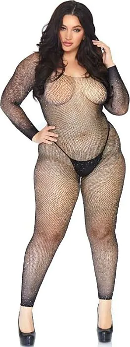 Siateczkowe bodystocking Leg Avenue w rozmiarze 1X-2X — długie rękawy, bezszwowa konstrukcja i ozdobne kryształki. Świetne, jeśli chcesz podkreślić sylwetkę bez dodatkowych elementów bielizny; łatwe w zakładaniu i efektowne. Dobry wybór dla osób szukających odważnego, a jednocześnie wygodnego modelu w przystępnej cenie.