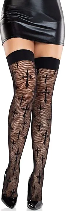 Medias Worship Me od Leg Avenue to połączenie tajemnicy i zmysłowości. Z intrikatnym wzorem w siateczkę i gotyckimi krzyżami, idealnie podkreślą Twoje nogi.