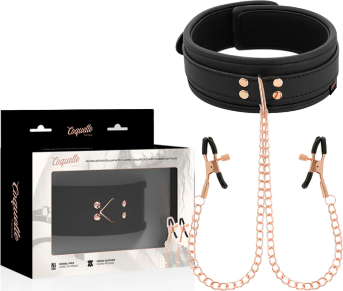 Naszyjnik COQUETTE FANTASY CHIC DESIRE to świetna propozycja dla początkujących w świecie fetyszy. Pinze na sutki zapewniają interesujące doznania, a ich regulacja jest prosta. Ograniczeniem może być brak wodoodporności.