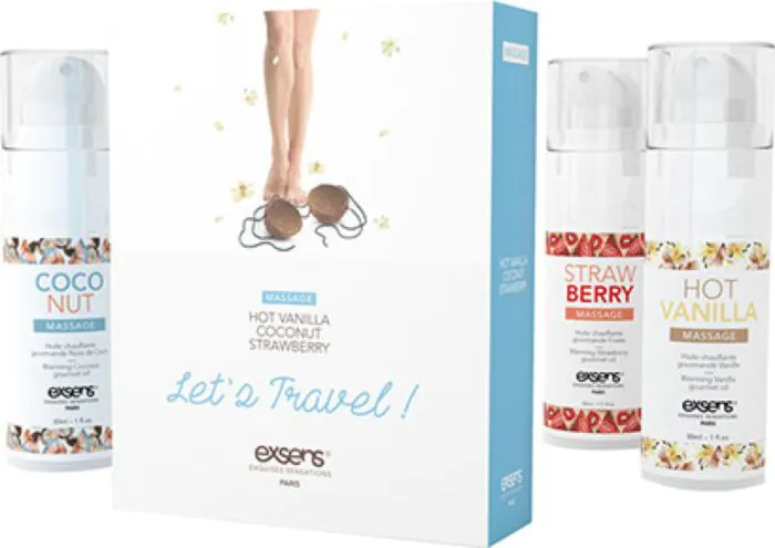 Zestaw trzech olejków do masażu w smakach truskawkowym, kokosowym i waniliowym. Idealny do odkrywania zmysłowych doznań i niezapomnianych chwil z partnerem.