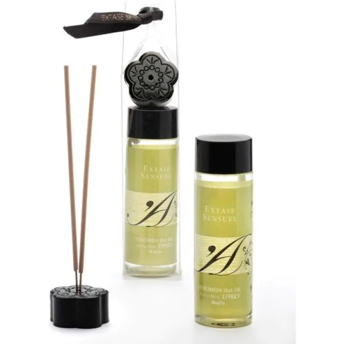 Zanurz się w unikalnym doświadczeniu sensorycznym z olejkiem do masażu Extase Sensuel z efektem ciepła i feromonami o smaku mojito. Ten wyśmienity olejek do masażu nie tylko dostarcza ciepłej przyjemności z opojnym efektem ciepła, ale także wzbogacony jest o feromony, które pobudzają atrakcję i pragnienie u Twojego partnera.