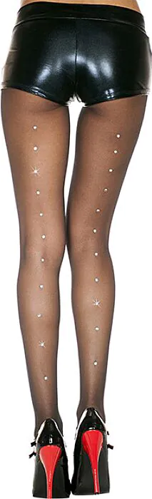 Półprzezroczyste panty od Music Legs z ozdobnym detalem pedrerii i wyraźnym przeszyciem. Dla osób, które chcą dodać blasku swojej bieliźnie przy zachowaniu lekkości i kobiecego kroju. To propozycja bardziej na wyjątkowe okazje niż codzienne użytkowanie.