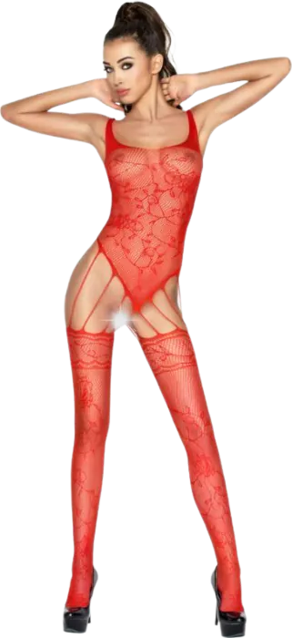 Odkryj nowy wymiar zmysłowości z bodystockingiem Passion Woman BS034 w kolorze czerwonym, jednolity rozmiar.