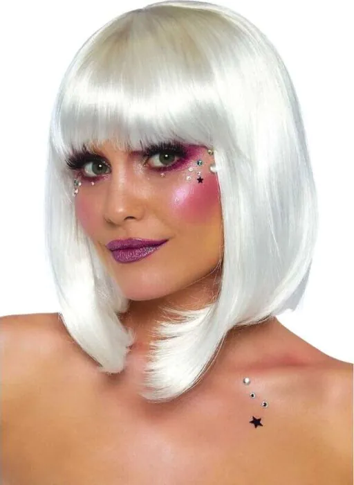 Odważny styl i oryginalny wygląd z białą peruką typu bob, która świeci w ciemności. Ta wyjątkowa peruka została wykonana z wysokiej jakości materiałów, zapewniając jednocześnie naturalny wygląd i miękkość w dotyku. Idealna na letnie festiwale, tematyczne imprezy czy Halloween.