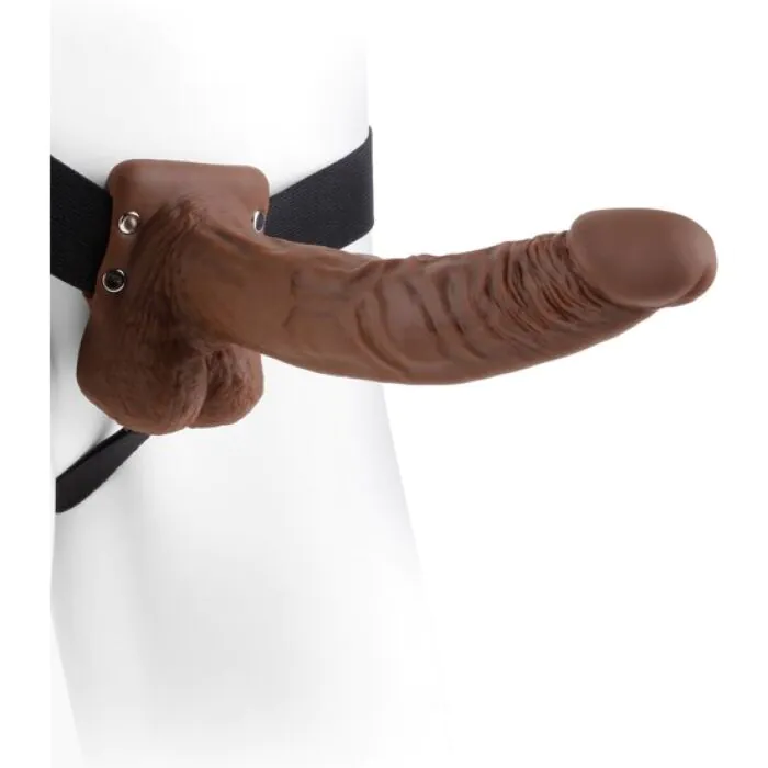 HOLLOW STRAP-ON W BALLS 9 INCH BROWN