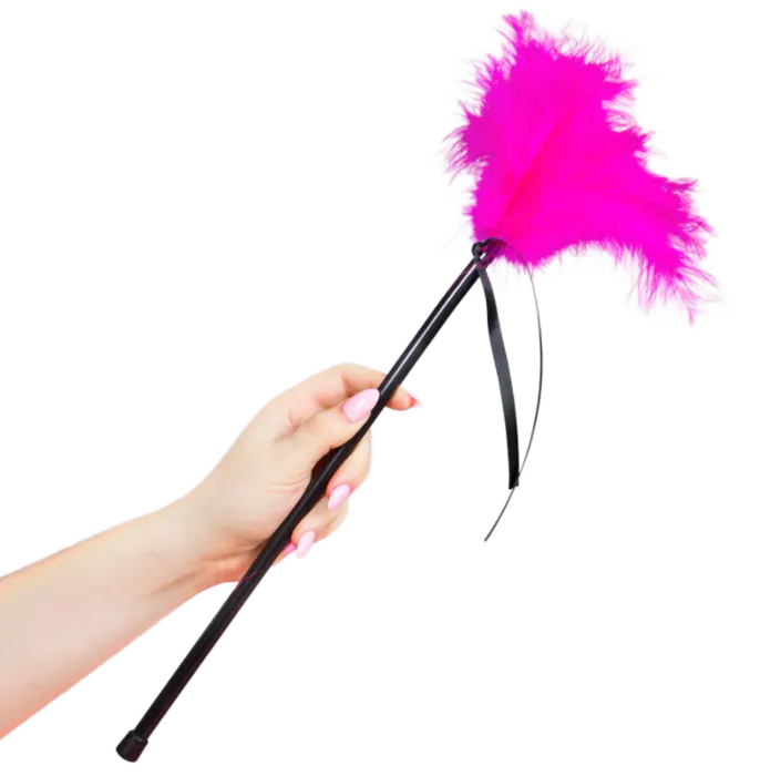 Trzymaj pręt blisko końca i prowadź pióra lekko po skórze — większy nacisk zmniejszy efekt łaskotania, delikatne muśnięcia z kolei zwiększą napięcie. Świetnie sprawdza się w połączeniu z opaską na oczy lub z innymi zabawkami erotycznymi, gdy chcesz zwiększyć element zaskoczenia. Unikaj stosowania na uszkodzonej skórze i ustal granice z partnerem. Nie jest to narzędzie do uderzeń ani twardych technik BDSM.