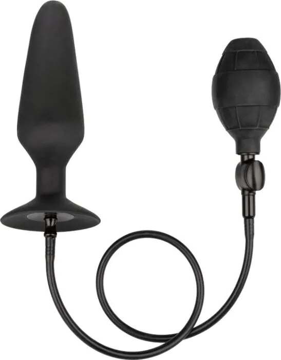 Nadmuchiwany plug analny CALEXOTICS XL wykonany z gładkiej, bezzapachowej sylikony. Daje regulowaną objętość dzięki odłączalnemu wężyku i gruszce, a po napompowaniu utrzymuje rozmiar bez wężyka. Dla osób, które chcą kontrolować szerokość i szukają solidnej podstawy z przyssawką do zabawy bez ramiączek.
