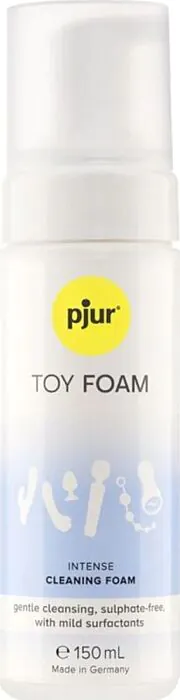 Do czyszczenia zabawek erotycznych używaj wyłącznie Pjur TOY FOAM, aby zachować ich trwałość i jakość. Unikaj stosowania ostrych środków czyszczących, aby nie uszkodzić materiału.