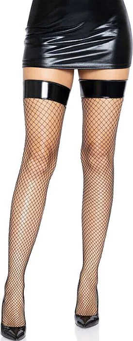 Połączenie siatki i winylu nadaje tym pończochom wyjątkowy wygląd. Idealne dla tych, którzy chcą dodać odrobinę pikanterii do swojej bielizny.