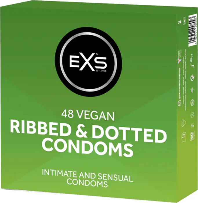 Opakowanie 48 prezerwatyw Exs z żeberkami i wypustkami zaprojektowane z myślą o intensyfikacji doznań podczas stosunku. Wykonane z lateksu naturalnego, nasmarowane lubrykantem silikonowym, z depozytem i szerokością nominalną 56 mm — komfortowe dopasowanie dla większości użytkowników. Dobre rozwiązanie dla par i osób, które chcą tekstury bez dodatkowych kompromisów.