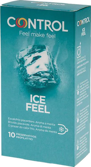 Aromat mięty w prezerwatywach Control Ice Feel zapewnia orzeźwiające doznania oraz przyjemny chłód podczas zbliżenia. Wykonane z naturalnego lateksu, te prezerwatywy mają nominalną szerokość 54 mm, co czyni je komfortowymi dla większości użytkowników.