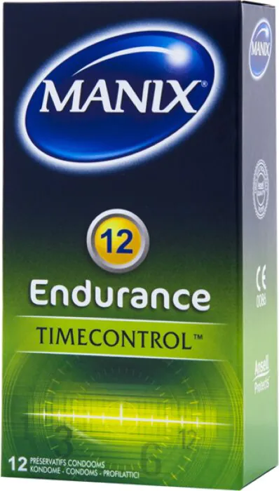 Manix Endurance to zestaw 12 nawilżanych prezerwatyw z żelem zawierającym lidokainę — dla mężczyzn, którzy chcą opóźnić wytrysk bez rezygnacji z komfortu. Standardowa szerokość 53 mm daje wygodne dopasowanie większości użytkowników. Przezroczyste, z wkładką zbiorniczka i elektronicznym testem szczelności.