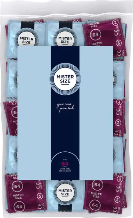 Prezerwatywy MISTER SIZE mają szerokość nominalną 64 mm, co zapewnia doskonałe dopasowanie dla mężczyzn o większej budowie.