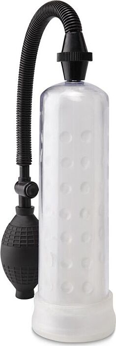 Włóż penis do cylindra i naciśnij ręczną pompkę, aby stworzyć próżnię. Użyj elastycznej końcówki, aby uzyskać idealne dopasowanie. Dla lepszego komfortu zaleca się stosowanie lubrykantu na bazie wody.