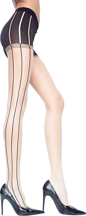 Rajstopy Music Legs z delikatnymi, pionowymi prążkami przy bocznych szwach — prosty sposób na optyczne wysmuklenie nóg. Świetne do sukienek i eleganckich stylizacji, dla osób które chcą dodać garderobie dyskretnego akcentu. Jeśli szukasz bardzo grubych lub termicznych rajstop, ten model nie będzie najlepszy. Sprzedajemy w dyskretnym opakowaniu sklepu erotycznego.