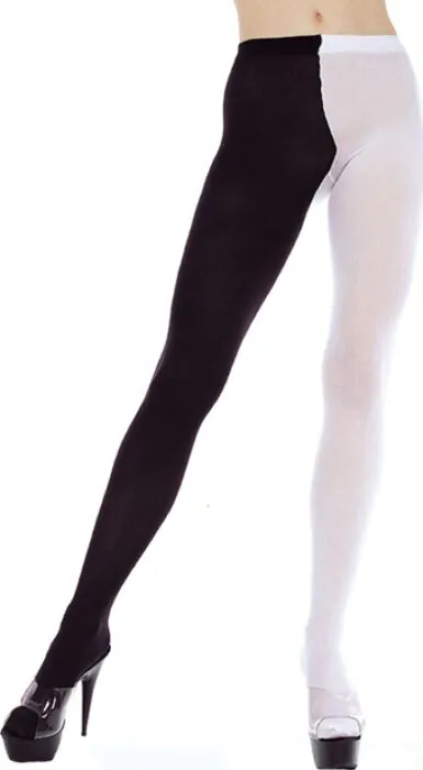 Gładkie, kryjące rajstopy Music Legs w rozmiarze XXL, z nietypowym akcentem — jedna nogawka w kolorze czarnym, druga biała. Dla osób szukających odważnego, modnego detalu przy zachowaniu klasycznej formy. Prosty krój, łatwe do stylizowania pod sukienki i spódnice. Świetne, jeśli chcesz ożywić look bez skomplikowanych dodatków.