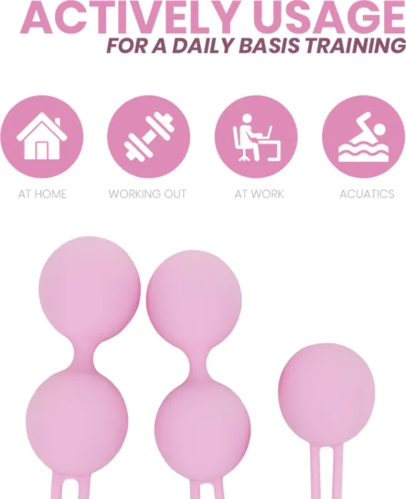 Wzmocnienie mięśni dna miednicy dzięki trzem indywidualnym trenerom w formie silikonowych kulek, które dostosowują się do Twoich potrzeb. Wykonane z hipoalergicznej medycznej silikony, zapewniają komfort i bezpieczeństwo podczas ćwiczeń.