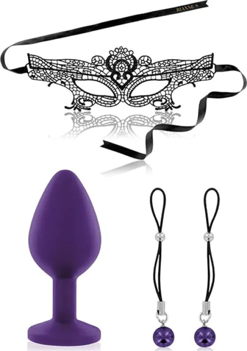 Elegancki zestaw bondage od Rianne S, który zawiera opaskę na oczy, plug oraz ozdoby/kolczyki do sutków. Stworzony z myślą o parach chcących zacząć zabawy sensoryczne i delikatny bondage bez komplikacji. Dobry wybór, gdy szukasz kompletnego, prostego zestawu na pierwsze eksperymenty i urozmaicenie wieczoru.