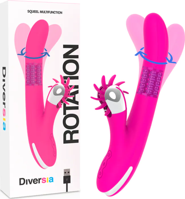 DIVERSIA BUNNY ROTATION to wibrator dla osób szukających intensywnej stymulacji. Potężne tryby rotacji i stymulacji clitorisu oferują różnorodność doznań. Wada: jego rozmiar może być nieco duży dla początkujących.