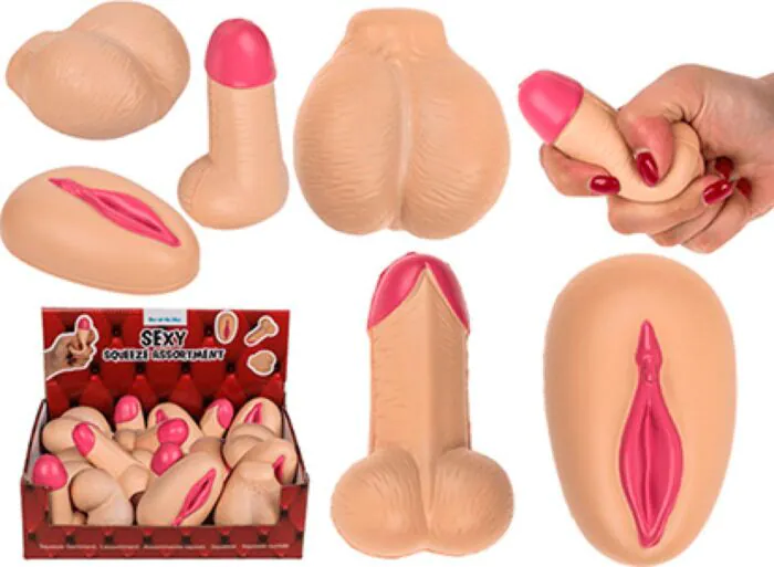 Śmieszny, poręczny zestaw antystresowy od Out Of The Blue: 12 małych, ściskanych figurek — po 4 penisy, wulwy i jądra. Dobre jako prezent na wieczór panieński lub gadżet biurowy. Jeśli szukasz prostego, lekkiego gadżetu do rozładowania napięcia — to trafny wybór.