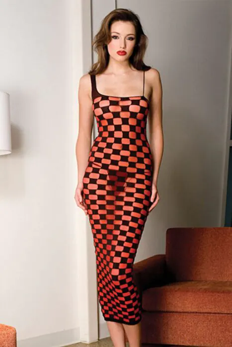 Sukienka o długim kroju z atrakcyjnym wzorem w kratę. Idealna na różne okazje, dla kobiet, które cenią styl i wygodę.