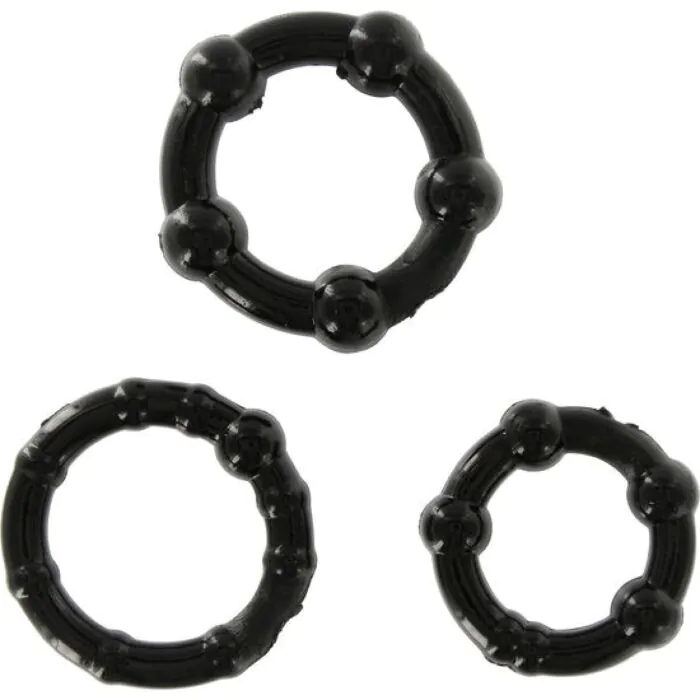 Zestaw trzech silikonowych pierścieni, które pomagają w wydłużeniu erekcji. Idealne dla tych, którzy pragną intensywniejszych doznań. Można je stosować osobno lub w zestawie.