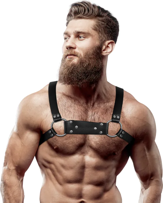 Stylowy arnés do klatki piersiowej, który podkreśla męską sylwetkę i dodaje seksownego charakteru Twoim stylizacjom. Wykonany z wysokiej jakości eko-skóry, ten arnés daje efekt dopasowania i komfortu na każdym kroku. Z rozmiarze M/L, możesz go łatwo dopasować do swojego ciała, co czyni go idealnym do noszenia zarówno na co dzień, jak i na specjalne okazje.