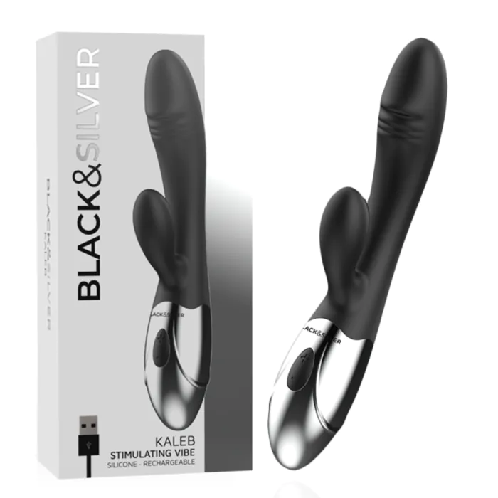 Kaleb to wibrator rabbit od BLACK&SILVER z dwoma silnikami — w czubku i w „uszyku” do stymulacji łechtaczki. Ma 10 trybów pracy, miękką, hipoalergiczną silikonową powierzchnię i ładowanie USB. Dla tych, którzy chcą mocniejszych, jednoczesnych wibracji wewnętrznych i zewnętrznych. Uwaga: sprzedaż dostępna tylko w punktach stacjonarnych; w zestawie próbka lubrykantu 6 ml.