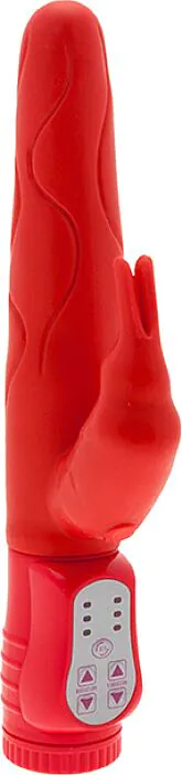 To wibrator typu rabbit z dwoma rodzajami stymulacji: obracający trzon i zewnętrzny króliczek do łechtaczki. Mówię to tak, jak w sklepie — masz dwie niezależne akcje, które możesz dopasować do siebie, więc łatwo znajdziesz kombinację, która Ci pasuje. Sylikonowa powierzchnia jest miękka w dotyku, ale jednocześnie na tyle sztywna, by przenosić ruchy rotacyjne bez utraty kształtu. Kolor: czerwony.