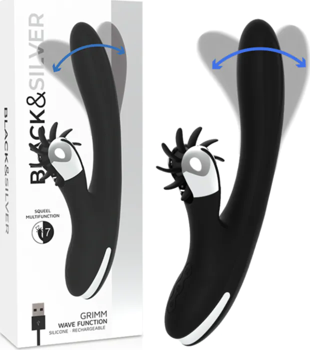GRIMM WAVE FUNCTION to wibrator punktu G od Black&Silver z systemem „wave” naśladującym ruch palców oraz mocnym silnikiem. Dla osób, które chcą głębokiej stymulacji G i dodatkowej stymulacji łechtaczki. Silikonowa powłoka jest miękka dla skóry, urządzenie ładowane przez USB i wodoodporne — dobry wybór, jeśli szukasz wszechstronnego, solidnego urządzenia w przystępnej klasie.