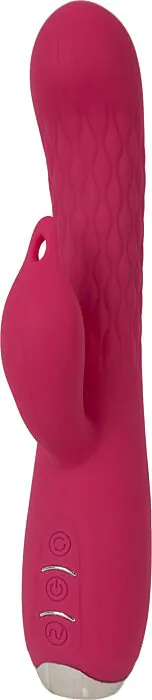 To wibrator rabbit, który łączy klasyczną formę z dodatkowymi funkcjami: prosty, sztywny trzon z zaokrąglonym końcem ułatwia penetrację i pozwala na komfortowe dopasowanie kąta, a krótszy „języczek” przy końcu ramięka daje precyzyjną stymulację łechtaczki. Wewnątrz osi pracuje silnik z perłami — zamiast tylko wibracji poczujesz delikatny ruch rotacyjny, który inaczej stymuluje ściany pochwy i punkt wejścia łechtaczki.